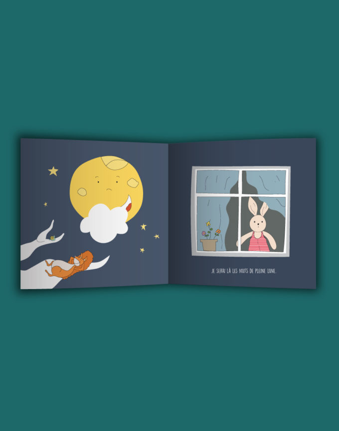 Magnifique!!! Je pense un des plus beaux cadeaux que j’ai pu offrir à ma fille! J’espère qu’elle le gardera pour toujours !! Bravo à vous pour le travail, les illustrations et la créativité dont vous faites preuve, j’en étais limite émue! Son doudou est très réussi! Bravo j’encourage vos créations tout autour de moi et déjà plusieurs commandes!
