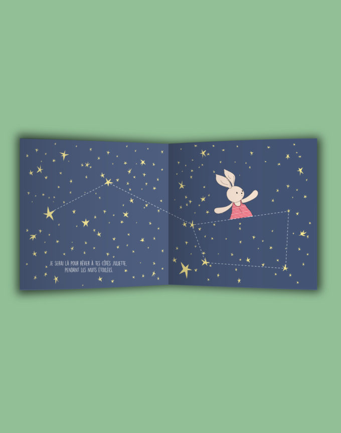 Chaque livre possède le prénom de l’enfant et le nom de son doudou.